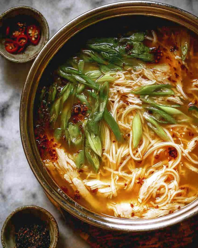 Presentation is key when serving your Aromatic Ginger Garlic Chicken Soup. A few simple garnishes can make your dish look even more appetizing. Start by sprinkling sliced green onions on top. They add a pop of color and a fresh flavor that brightens the soup.