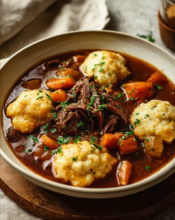 Cozy Slow Cooker Beef Stew with Fluffy Dumplings