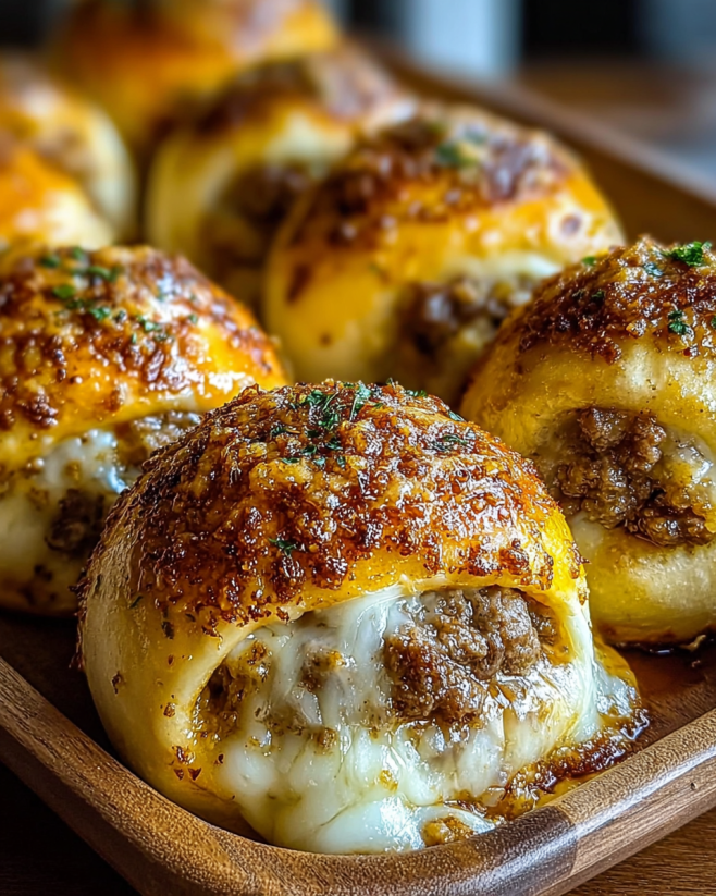 Garlic Parmesan Cheeseburger Bombs are a delightful twist on traditional cheeseburgers, featuring juicy meatballs made from seasoned ground beef, enveloped in flaky crescent roll dough and filled with cheddar and Parmesan cheese.