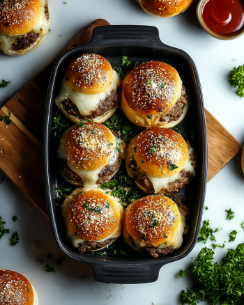 Garlic Parmesan Cheeseburger Bombs are a delightful twist on traditional cheeseburgers, featuring juicy beef patties wrapped in flaky biscuit dough with melted cheddar cheese and topped with garlic and Parmesan.