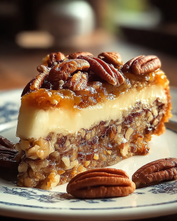A delightful dessert combining the nutty crunch of pecans with a creamy, gooey filling that melts in your mouth.