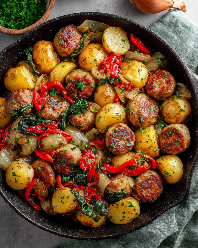 Irresistible Beef Sausage and Potatoes Skillet is the perfect dish for busy weeknights or cozy family dinners. This one-pan wonder combines savory beef sausage with tender baby potatoes, vibrant bell peppers, and fresh spinach. It’s not just a meal; it’s an experience that brings warmth and satisfaction to your table.