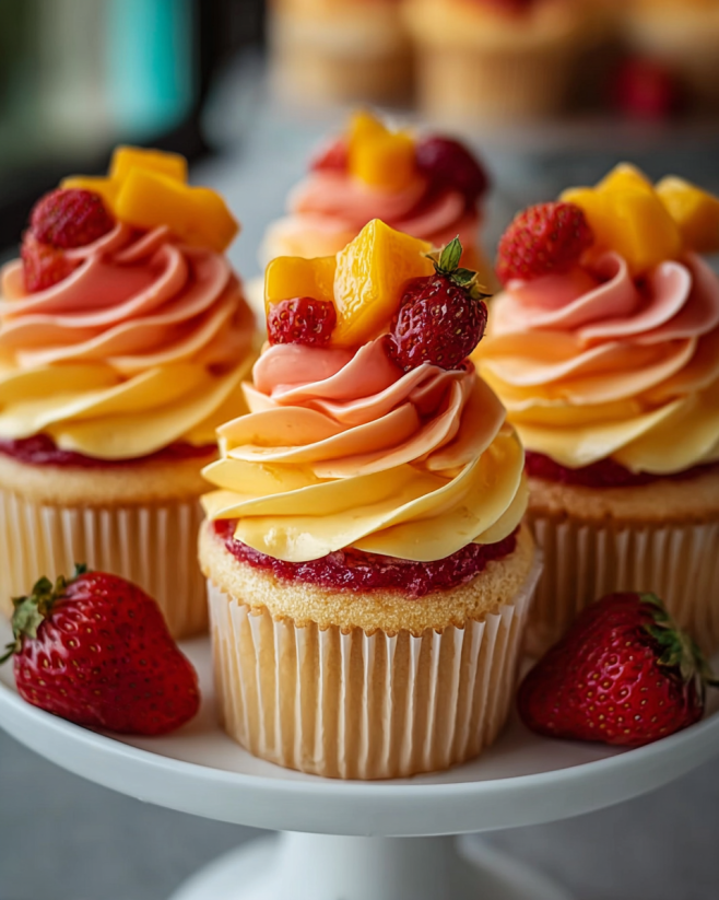 In conclusion, Mango Strawberry Sunset Cupcakes are a delightful treat that brings together the vibrant flavors of fresh mangoes and strawberries. These cupcakes are not only visually stunning but also incredibly tasty, making them a perfect dessert for any occasion. Whether you’re celebrating a birthday, hosting a summer barbecue, or simply enjoying a cozy evening at home, these cupcakes are sure to impress.