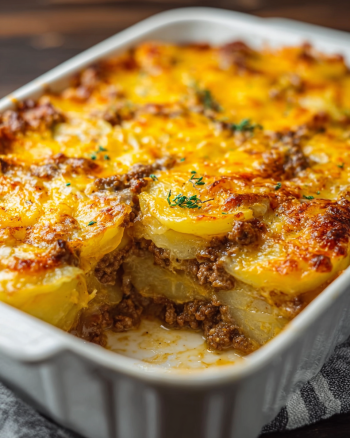 Cheesy Hamburger Potato Casserole is a family favorite!