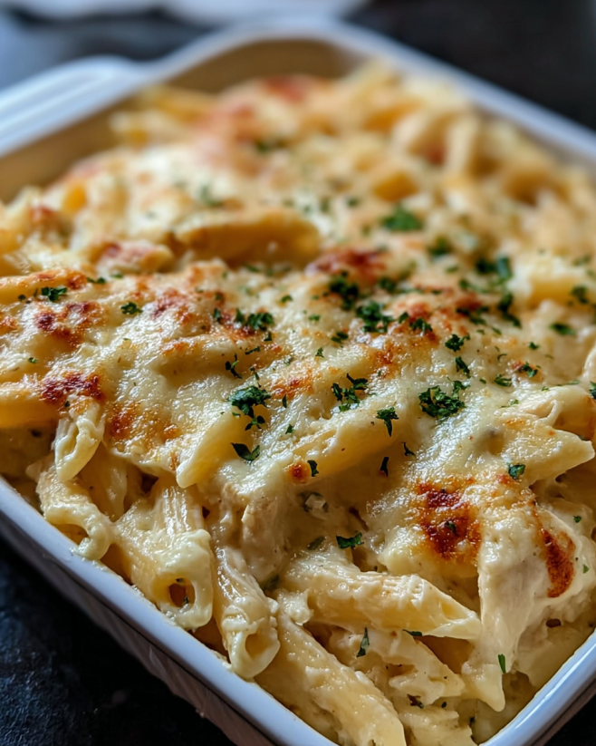 Creamy Chicken Alfredo Casserole is a family favorite!