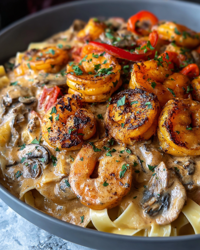 Mouthwatering Blackened Shrimp Stroganoff is delicious!