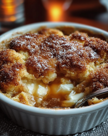 A delightful dessert that combines the classic flavors of snickerdoodle cookies with a warm, comforting cobbler, featuring a soft, cake-like base topped with a sweet cinnamon-sugar mixture.