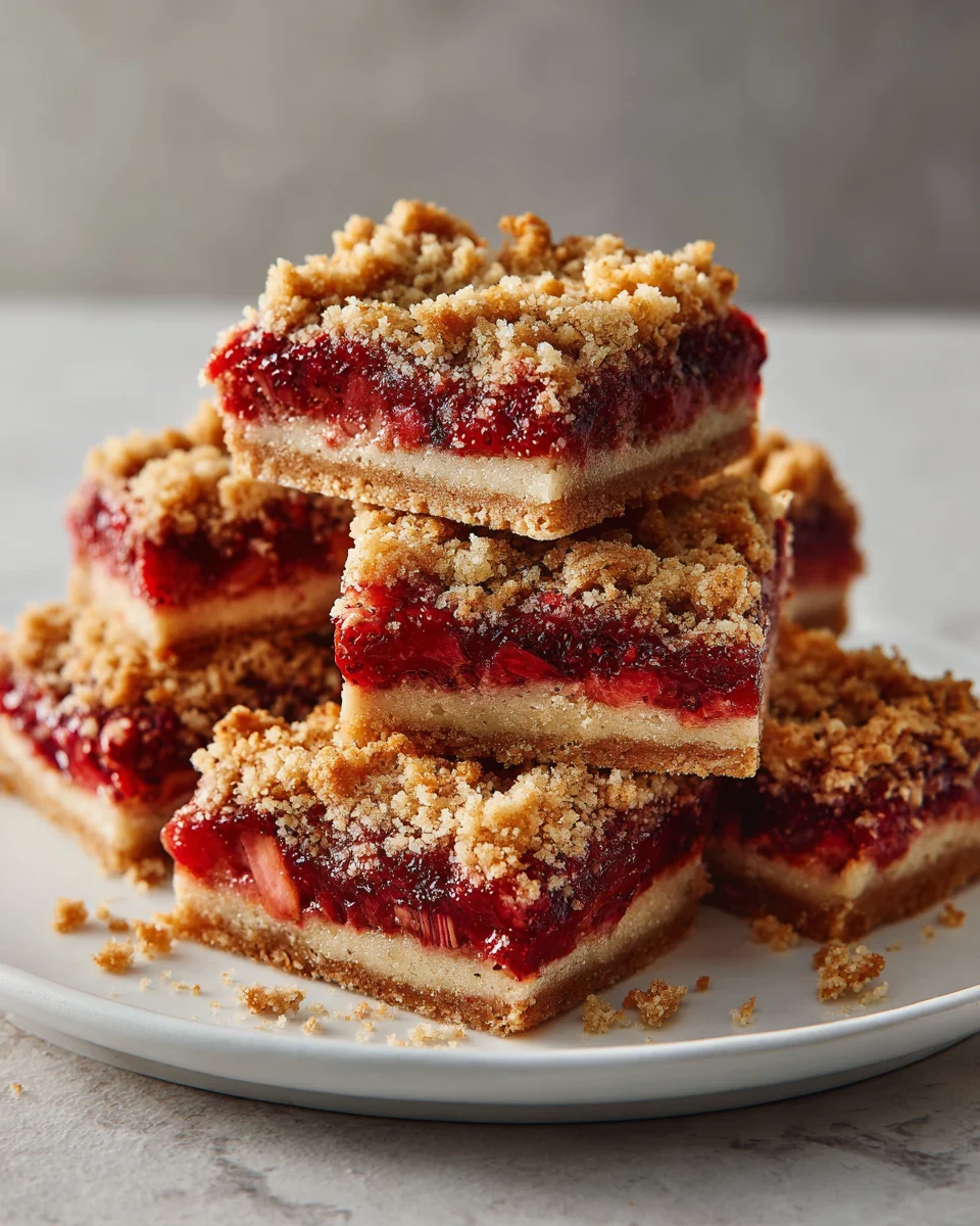 Strawberry Rhubarb Crumble Bars. With their delightful flavors and satisfying textures, these bars are bound to become a favorite in your household. Happy baking!