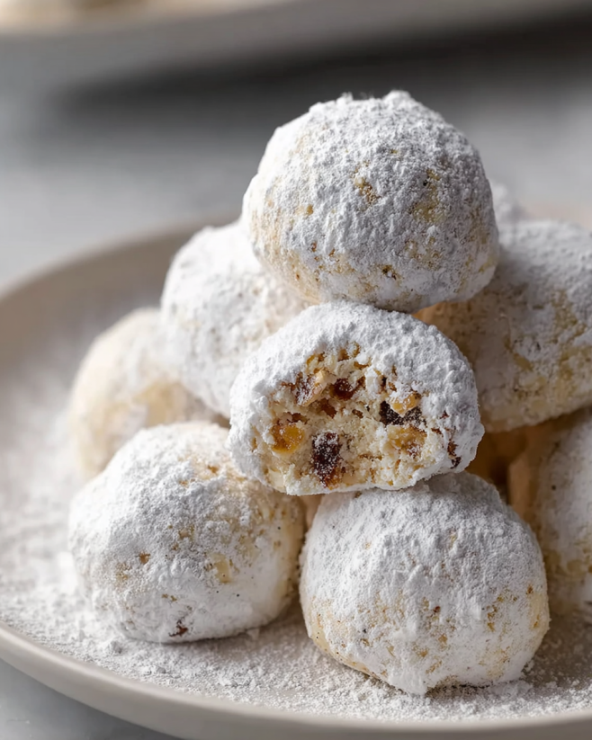 Delightful treats that melt in your mouth, resembling little snowballs, made with butter, flour, and finely chopped walnuts.